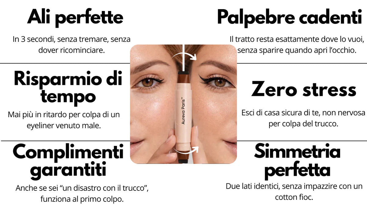Se fai fatica a realizzare una riga di eyeliner perfetta, questo eyeliner a timbro rotativo è un indispensabile. Ti permette di ottenere un tratto impeccabile in pochi secondi, senza alcuna abilità e senza dover rifare tutto il trucco.